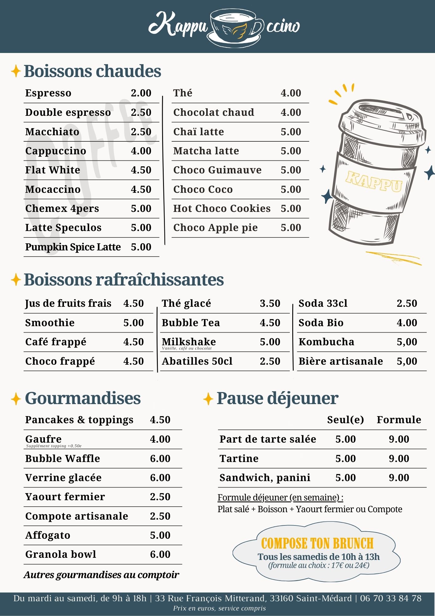 Pour toute réservation merci de nous contacter par téléphone ou via Instagram.